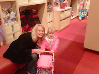 After some decision making, Miss E decided her purchase at American Girl store would be a new stroller for her Bitty Baby doll, who she has named Ava.