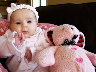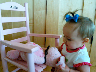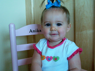 Anika eats anything we give her. Her most new favorite food is yogurt. She has gotten in a great routine with her evening bottle and then sleeps like a dream baby through the night. This morning her boisterous sister woke her at 8AM. I have a feeling we might be dealing with this for many years to come.
