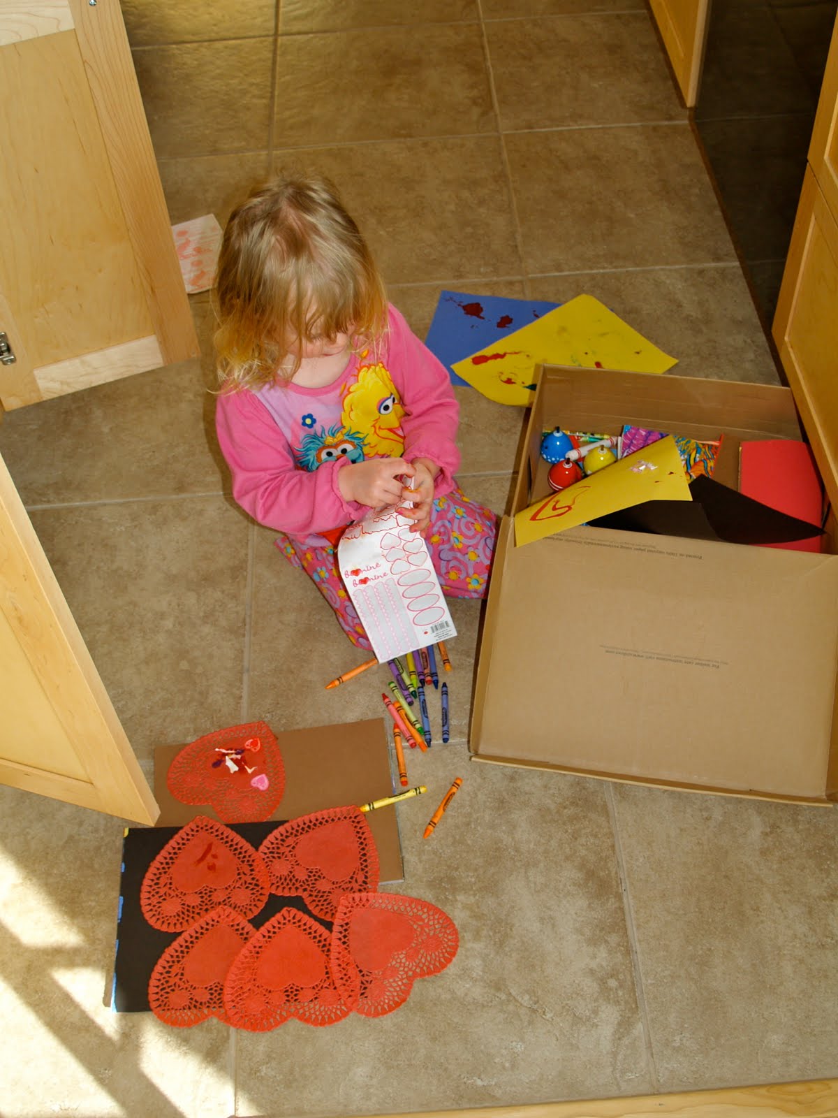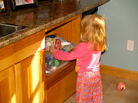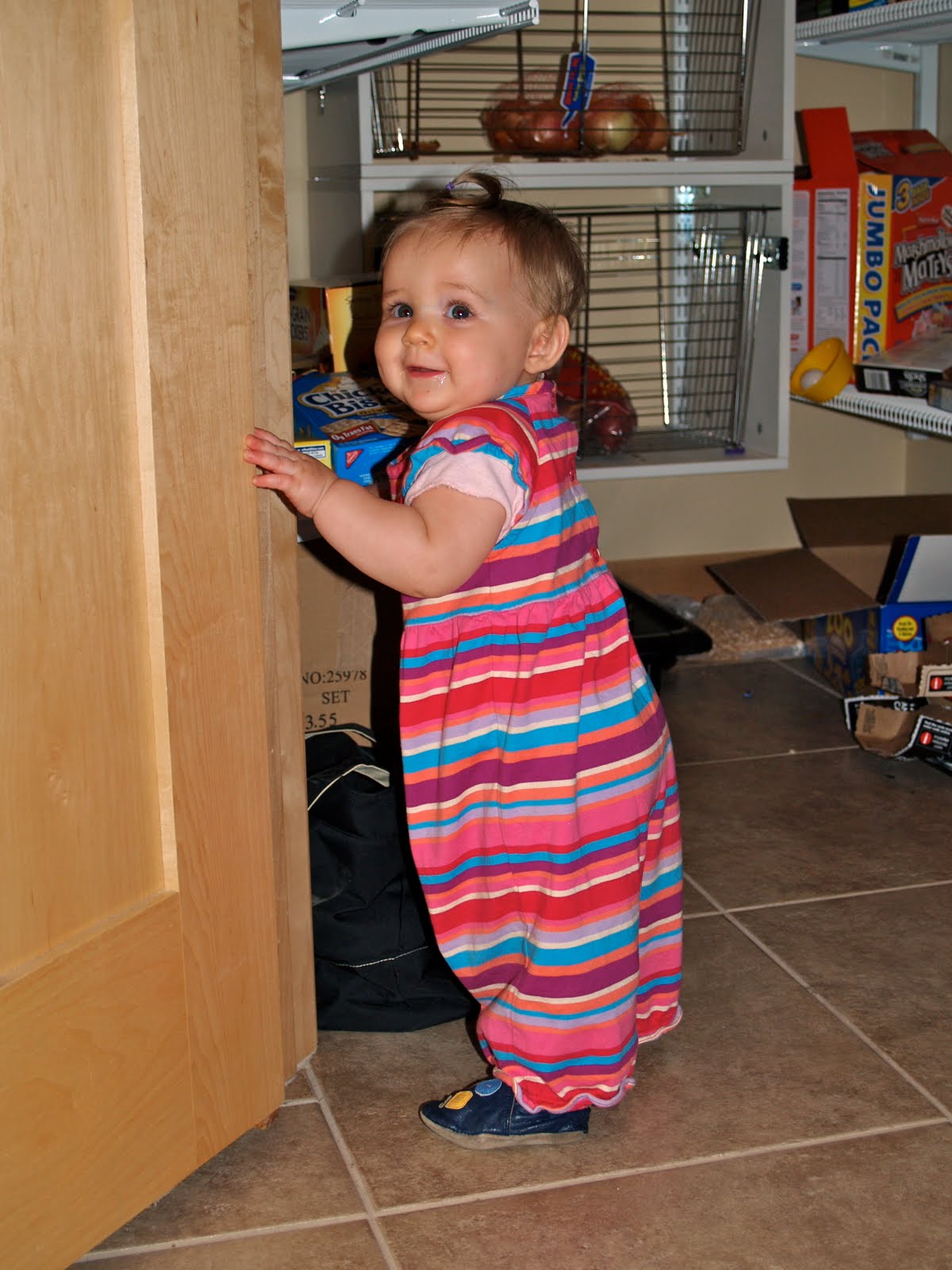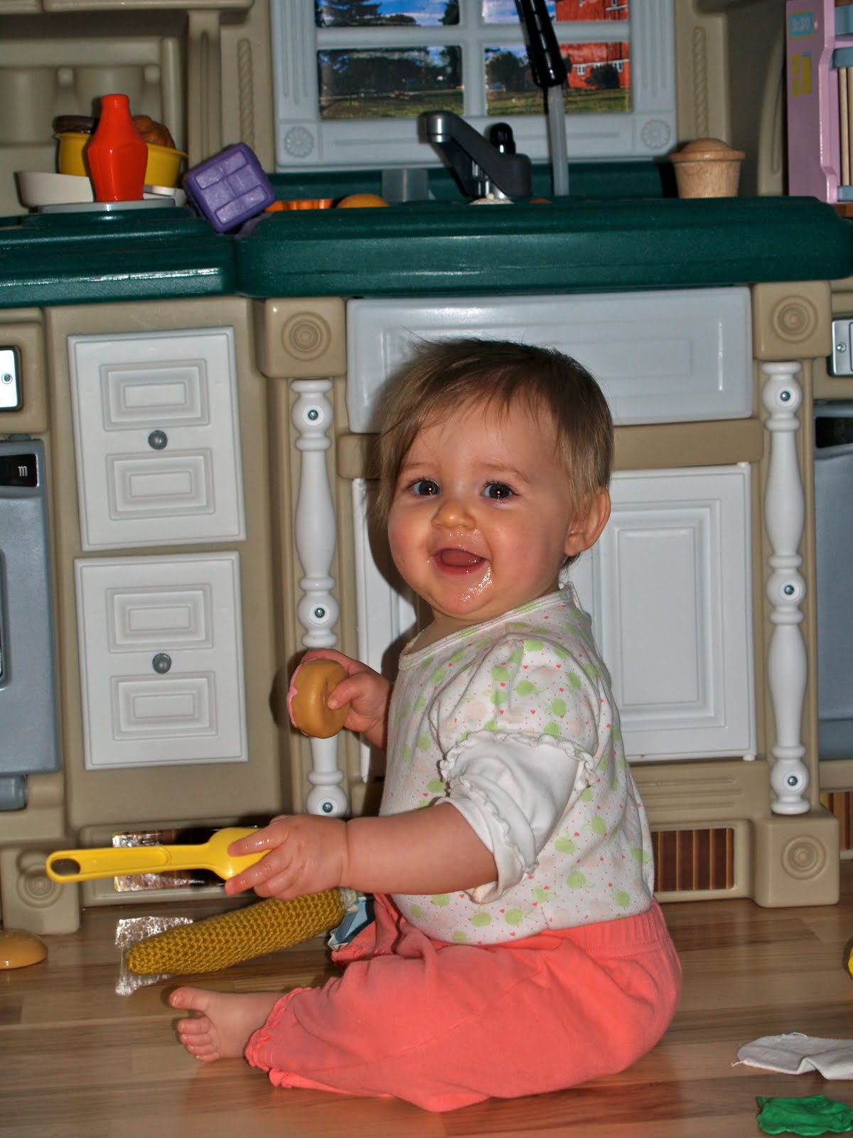 But she tends to drag it all upstairs to the kitchen floor. At least she is learning to entertain herself and is not glued to the television.