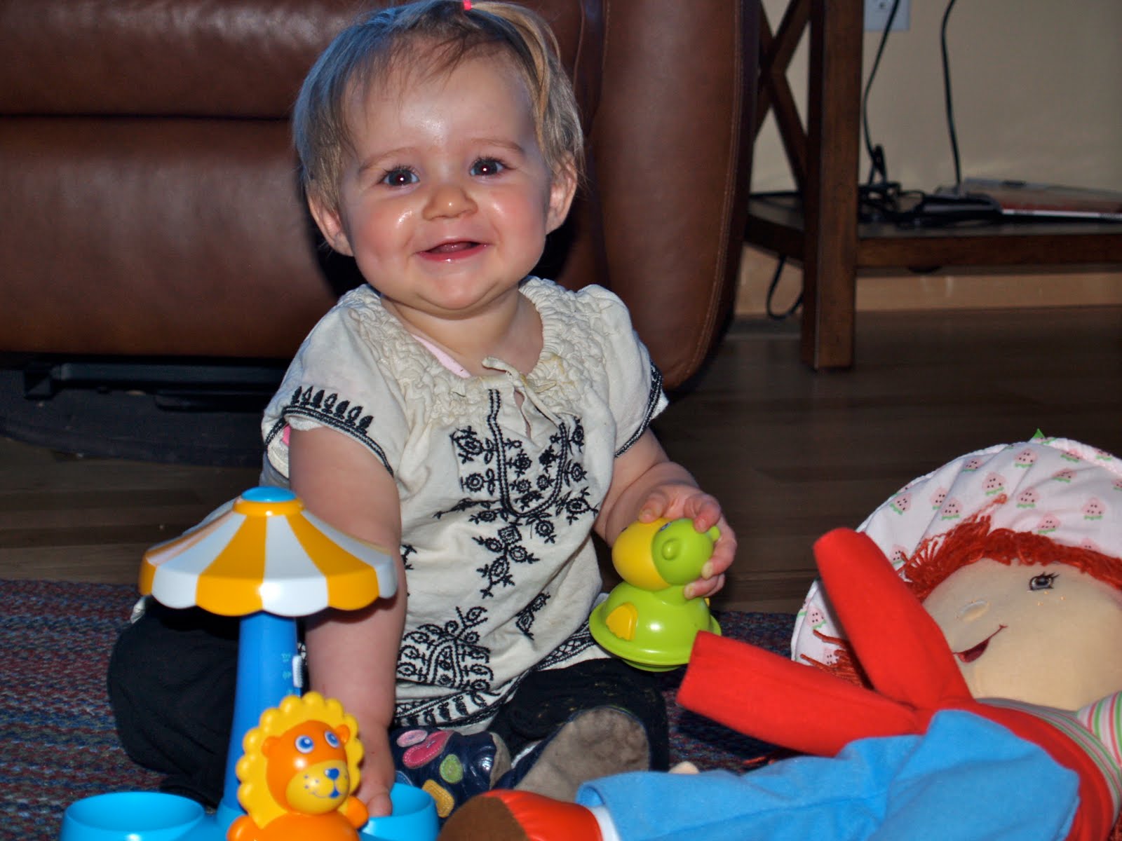 After cleaning up supper and the dishes last evening, it was just Anika and me playing together at home. I captured a few pictures of our happy play time together. Anika is changing every day now and just as sweet as ever.