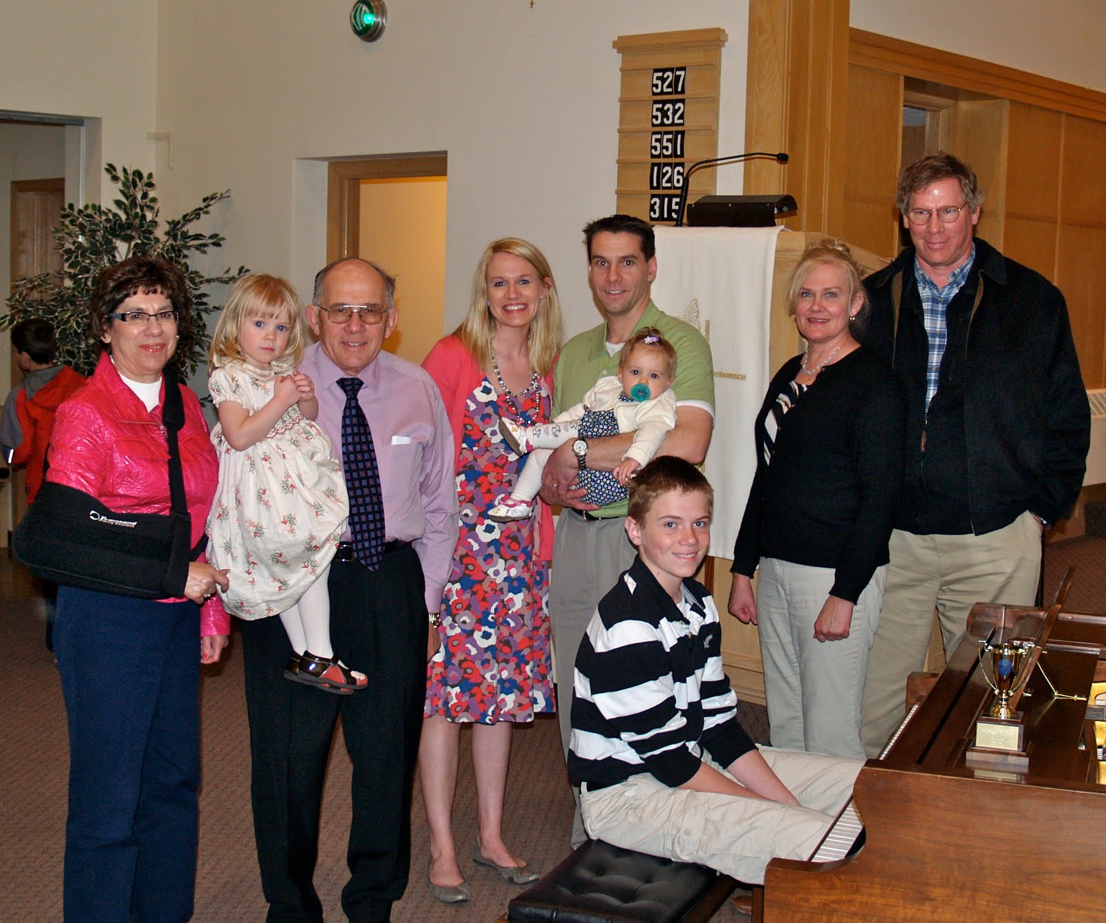 Yesterday afternoon Hunter had his annual spring piano recital. He played a duet with younger boy and two solos. We were proud of our piano playing boy. Hunter had Grandpa Fred, Mama Jane, Grandma Carol, Grandpa Eldon plus his parents and sisters as his piano recital fans. In a rare moment to record this memory, I came out of hiding from behind the camera and joined the picture. What the picture doesn’t show is Hunter is now exactly the same height as me or maybe a teeny tiny bit taller but I am not admitting that to him…yet.