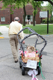 So after the wedding Gpa Eldon walked the girls over to the reception in the wagon and