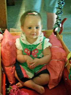 Anika practiced being a flower girl so well in the wagon that when it came time on Saturday afternoon for her daddy to take her out of the wagon during the actual wedding ceremony, Miss Anika was not happy and burst into tears. She just liked sitting back and taking it all in from her wagon view.