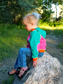 We threw rocks. No matter where we walk, E always needs to throw rocks. She has discus throwing in her jeans and indeed she is practicing at age two.