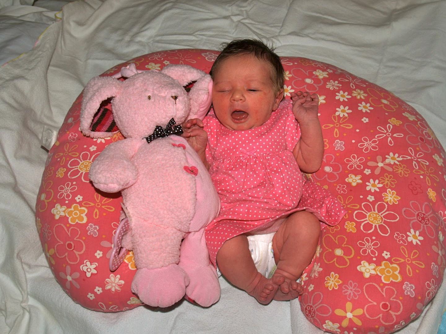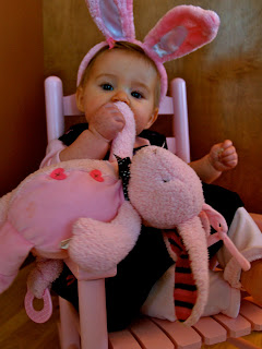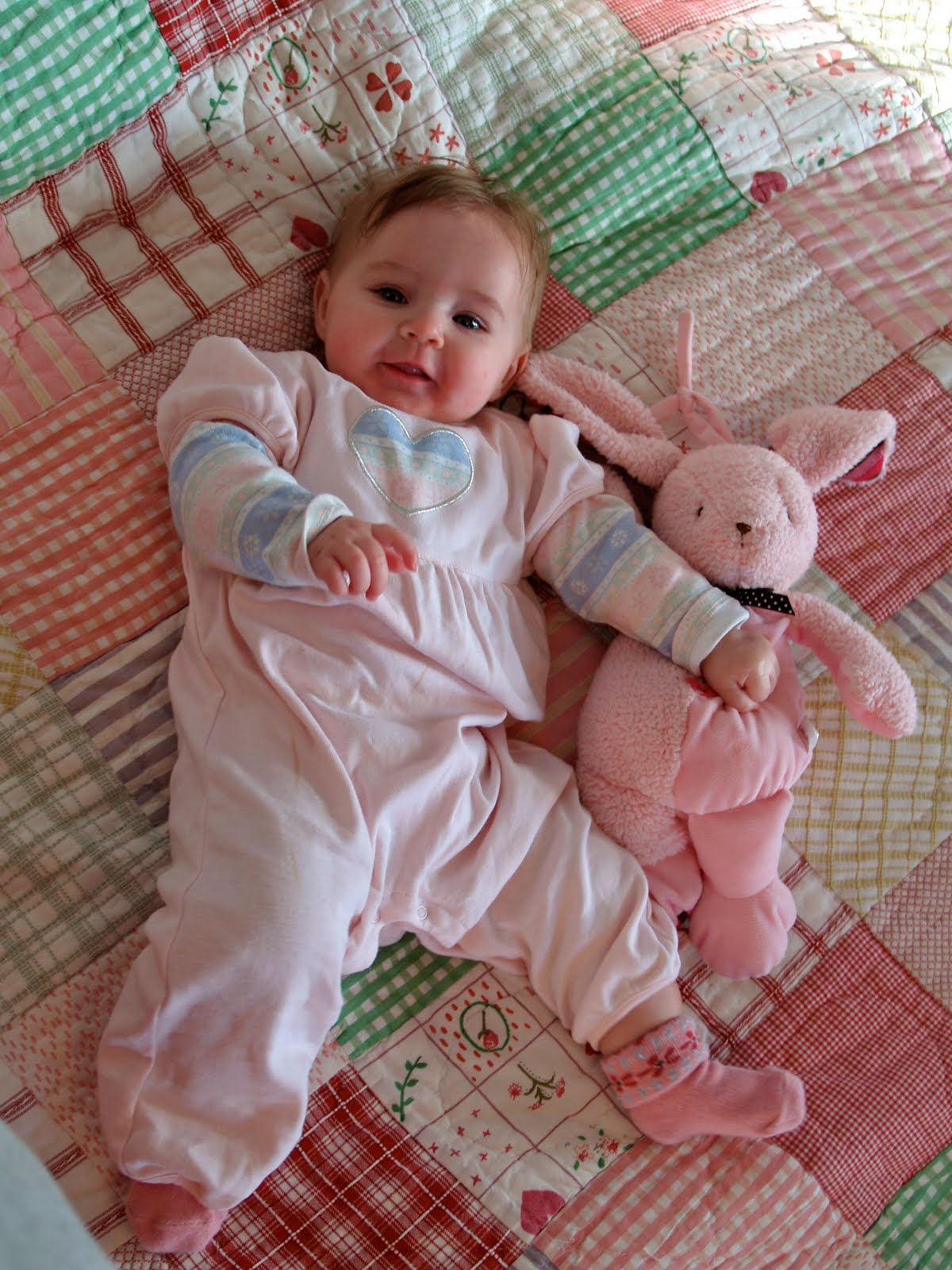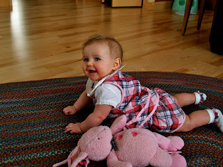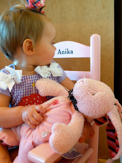 Today we are celebrating her first birthday, her golden birthday, together as a family with several friends joining us at our house tonight for a summer barbecue. She is wearing her special dress with her name on it. We can find her sister’s name in stores monogrammed on dresses or hair bows. But when your name is as Scandinavian as Anika we have to do a little searching. The beauty of connecting through social media, online shopping and fast shipping, we had this dress made and delivered to us from Texas. This is a custom dress from Ashley at SheSheMade. It was our first purchase from Ashley but I will be a frequent customer for both girls. It was so much fun to get this dress in the mail and Anika will be wearing often this month!Each month, Anika has taken her picture with the pink bunny that her daddy bought for her the day she was born. The bunny is named “Hop Hop”.