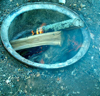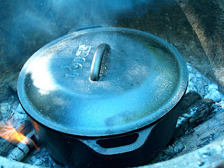 Get your fire going early so it can die down and create hot, ashy coals to cook. I learned a husband and a father-in-law are very good resources to have to build your fire.
