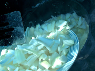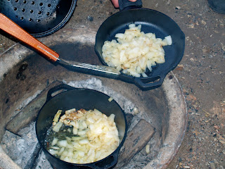If your fire isn’t getting enough air movement from the trees, resort to your husband getting a floor fan and an extension cord to help the fire cook your onions.