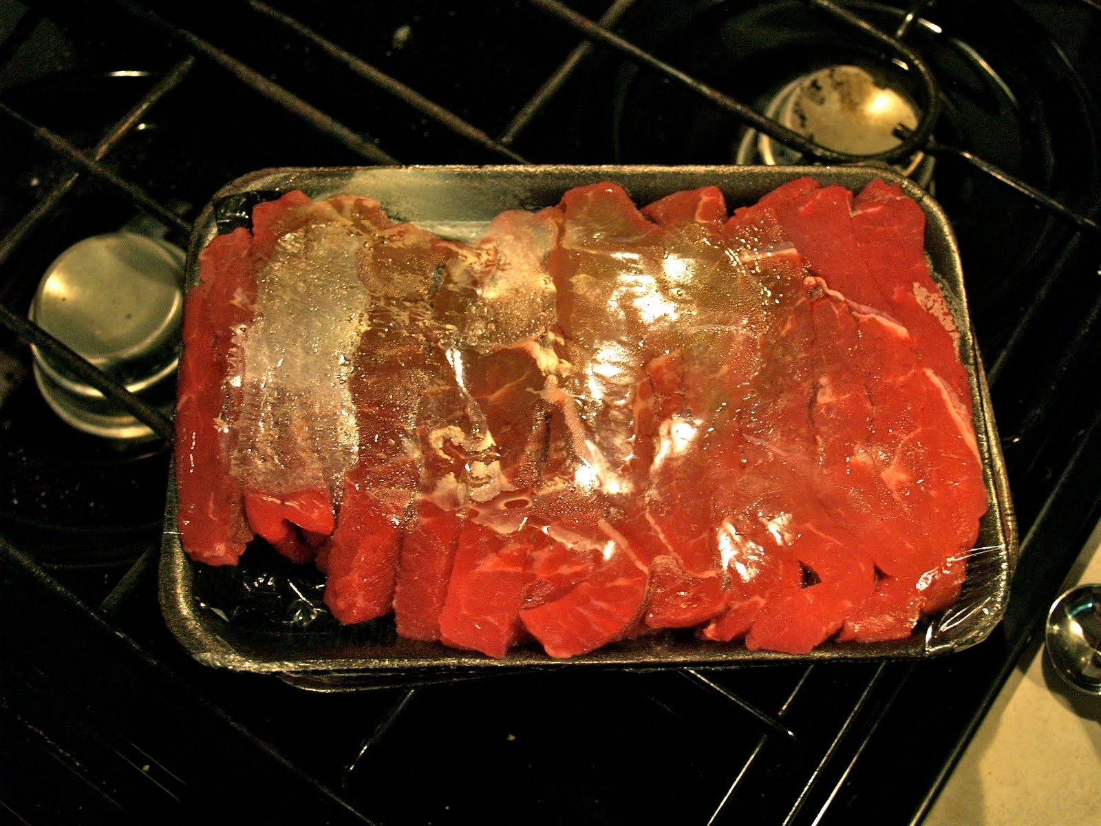 I used sliced boneless sirloin tip for the meat from my local butcher. He sliced it for me. Tenderizer it.