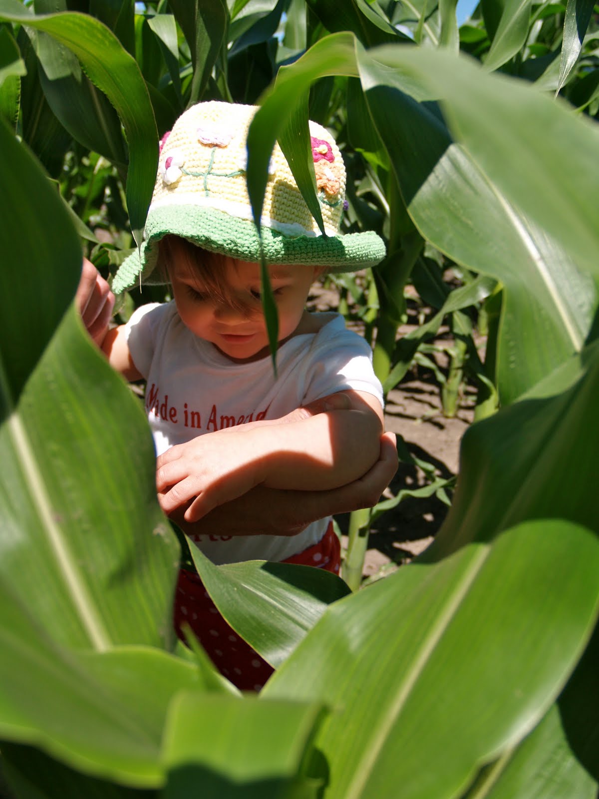 Depending on who is measuring this year our corn is over your head…on one year old Anika and definitely past all of our knees and hip high average sized folks.