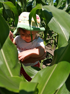 Hunter and cousin Logan went on a corn run just to check out the long corn rows…and to play a little hide and seek.