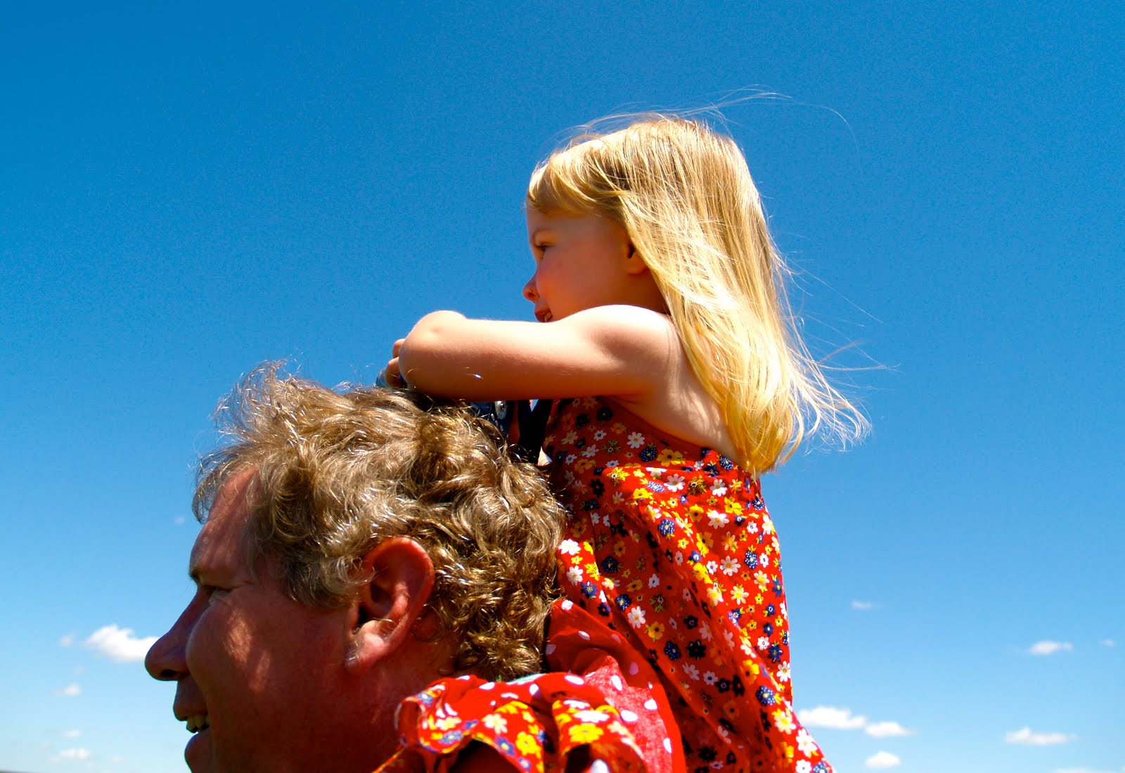 Miss E sat on Grandpa Fred’s big shoulders, taking pictures with Mayme’s camera while calling her brother and cousin to “come back!”