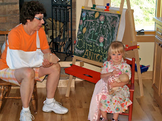 Elizabeth socialized at the party with many friends and took a break to feed her baby (fondly named Jared after one of her daycare friends) and to visit with Nana, who had hand surgery this week.