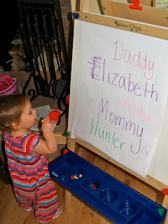 Okay, maybe not write, just she likes to eat crayons and chalk. We will work on letters another day.