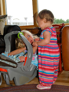 Unrelated to landscaping, here are a couple pictures for my mom, grandma, sister-in-law, sister and our son and big brother Hunter who will be home in two sleeps to see of the girls last night playing. You other blog stalkers who never comment but also check the blog to see the girls might enjoy a peek also.