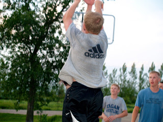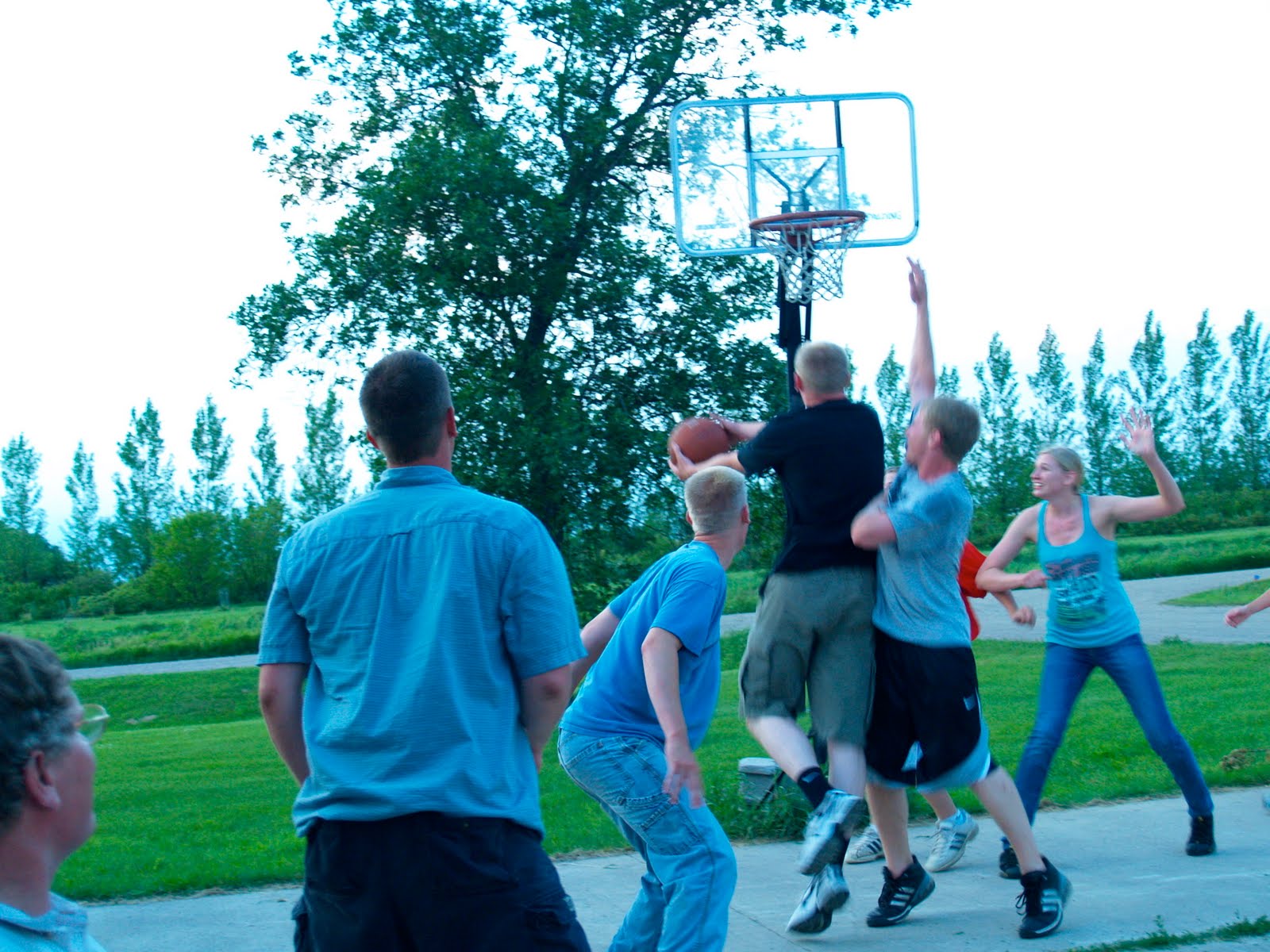 Even the three brave women, (cousin Scott’s wife) Elizabeth, sister Kirsti and me, that played showed their game. I was a part of the game for the first five minutes. Being the only one over the age thirty, I had cousin Logan sub in for me when I got my first bruise as I would prefer to not end up in the emergency room over pick up basketball. Admittedly, I had fun throwing a few elbows on my sister…just like old times.