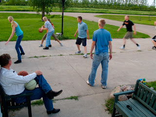 Much of our basketball passion comes from my dad’s playing days. He was the supervisor and commentator in this weekend’s pick up game on the farm.
