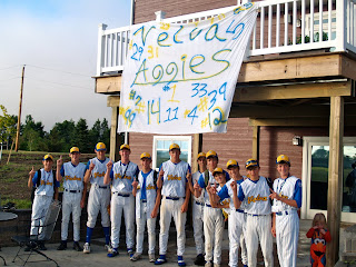 The team we hosted lost two games and were eliminated, sending them home to Velva, 200 miles to the northwest. We were hugely disappointed. This group of boys were the most respectful and fun loving teenage boys we have ever been around and we hope we see them again. It is likely their town will host this tournament next year and Hunter’s goal is to be there playing. The days we enjoyed with the Velva boys included games, a bonfire in our new fire pit (this is the best item my husband has ever brought home from the Pheasants Forever banquet) and the fire was complete with Nathan’s famed banana boats. You cut into a banana, fill it with marshmallows and Hershey’s chocolate squares, wrap it in foil and let it melt into banana marshmallow chocolate goo. It is pure gooey goodness and was a huge with the baseball boys.