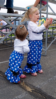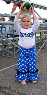 The girls had their new adorably cute game day outfits on and were ready to cheer on their big brother.