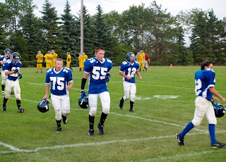 Our plan for the football season is to have the girls at home games. With parents, grandparents, aunts, uncles and friends to help us watch them we actually got to see parts of the game tonight.