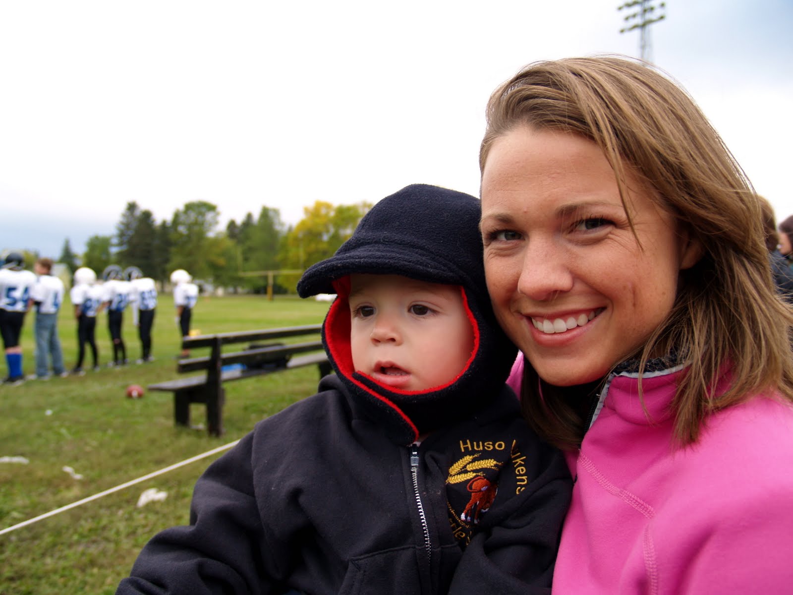 Nathan’s cousin, Kevin and his wife Tammy and family live near the town we played in and came to the game. Tammy teaches at the OPPOSING team’s school, the Rebels. Kevin farms and is also the Rebels boys basketball coach. We had a great supper at the local cafe with them after the game. Miss E got some quality bonding time with her favorite baby cousin, Ally Jane. Since Ally Jane’s birth we have several baby dolls in our house named Ally and it was intensely fun for E to play with Ally. Ally’s brother Austin and Connor were also there and had fun seeing Hunter play football.