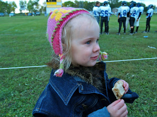 and well nourished with a peanut butter and honey sandwich on her favorite raisin bread. We need plenty of snacks to keep kids entertained at cool, fall football games.