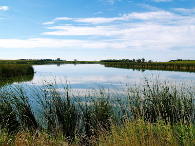 The above is the lake that separates my parent’s farm yard to my grandparent’s farm yard. The road between is about a quarter mile. This past weekend when I was walking by as Miss E plugged along on her bike and I was trying to make sure Anika grabbing a handful of rocks to eat as she walked by me, I stopped to look at the lake.