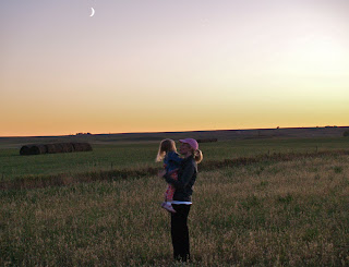 Last night Miss E and I walked out into the oats and alfalfa field just to the west of our house, leaving the camera behind us with Nathan. He snapped a few pictures.