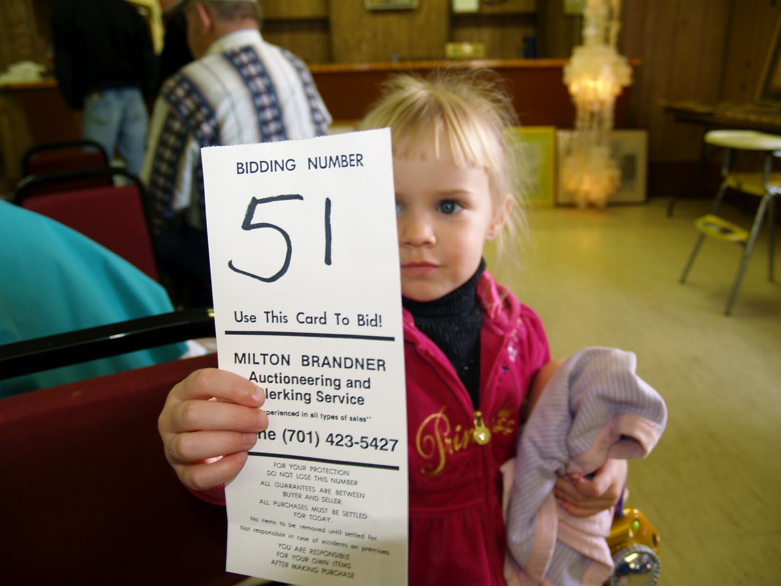 It was time to get a bidding number to see if we could win the baby crib for Miss E.