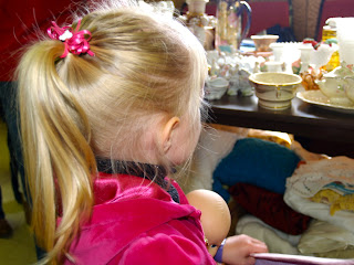 While Hunter worked on our church’s youth group lunch stand on Saturday at a local auction sale, Miss E and I decided to take a look around for treasures.