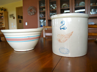 Two more prairie auction treasures were a pottery bowl that matches a set I already have and a 2 gallon Red Wing crock. I did not pay more than $25 for any item I purchased which was even more fun in our treasure hunting.