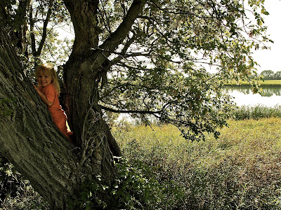 Miss E spotted a tree to climb late yesterday afternoon as we aimlessly were running through the lakeside grass.