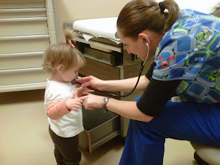 Today Miss A and I were in Bismarck for her belated 15 month immunizations and visit to Dr. Kozel. Above is a picture of Nathan and Miss A in the park recently. A strong resemblance?
