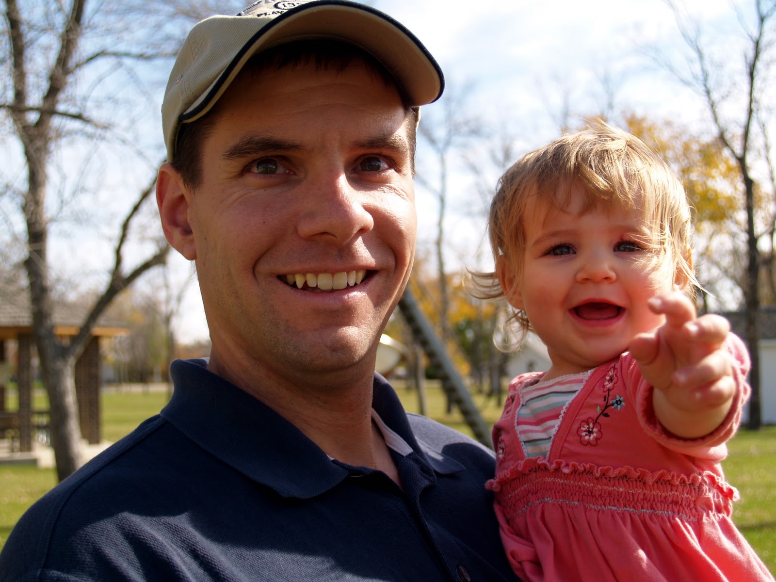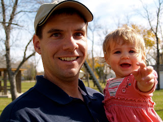 Today Miss A and I were in Bismarck for her belated 15 month immunizations and visit to Dr. Kozel. Above is a picture of Nathan and Miss A in the park recently. A strong resemblance?