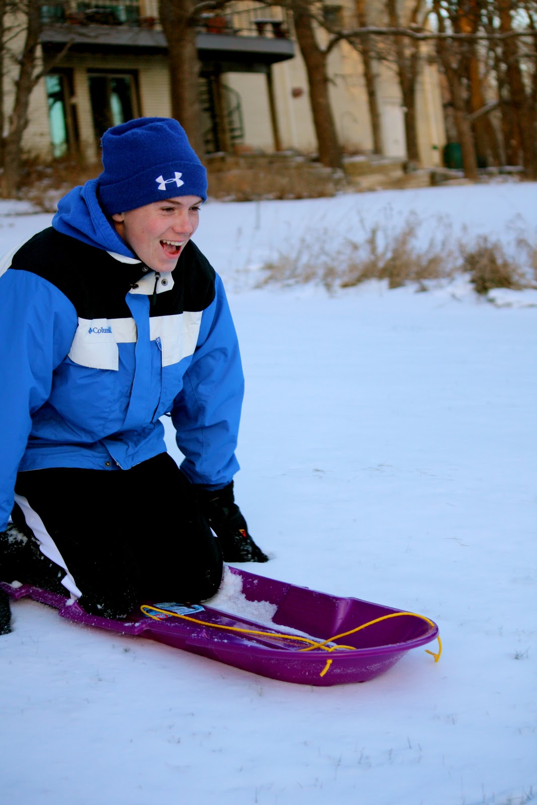 The family fun, calorie-burning method started with Nathan making a key purchase of a purple plastic sled on Thanksgiving Day morning.
