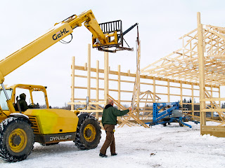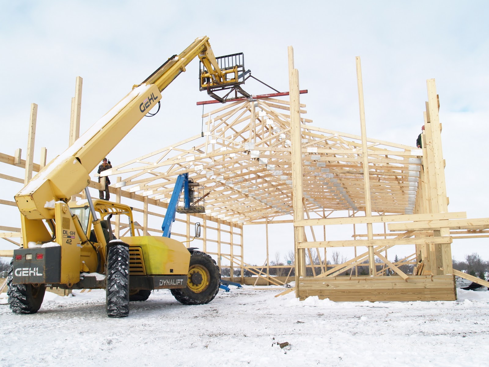 The person behind on wheel is a woman, Jacy, who works with her husband and father-in-law and are local carpenters we work with in our business. I was so impressed with Jacy’s skills as I took these pictures. Roof trusses were perfectly placed by her.