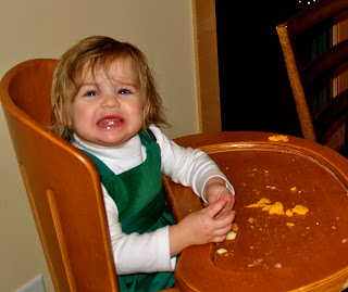 Anika’s lastest and greatest is to pull out her hair bow and smear any and all food into her hair. This child had a bath this morning. I promise. She was saying “Moooommmmmyyy” while I took her picture.