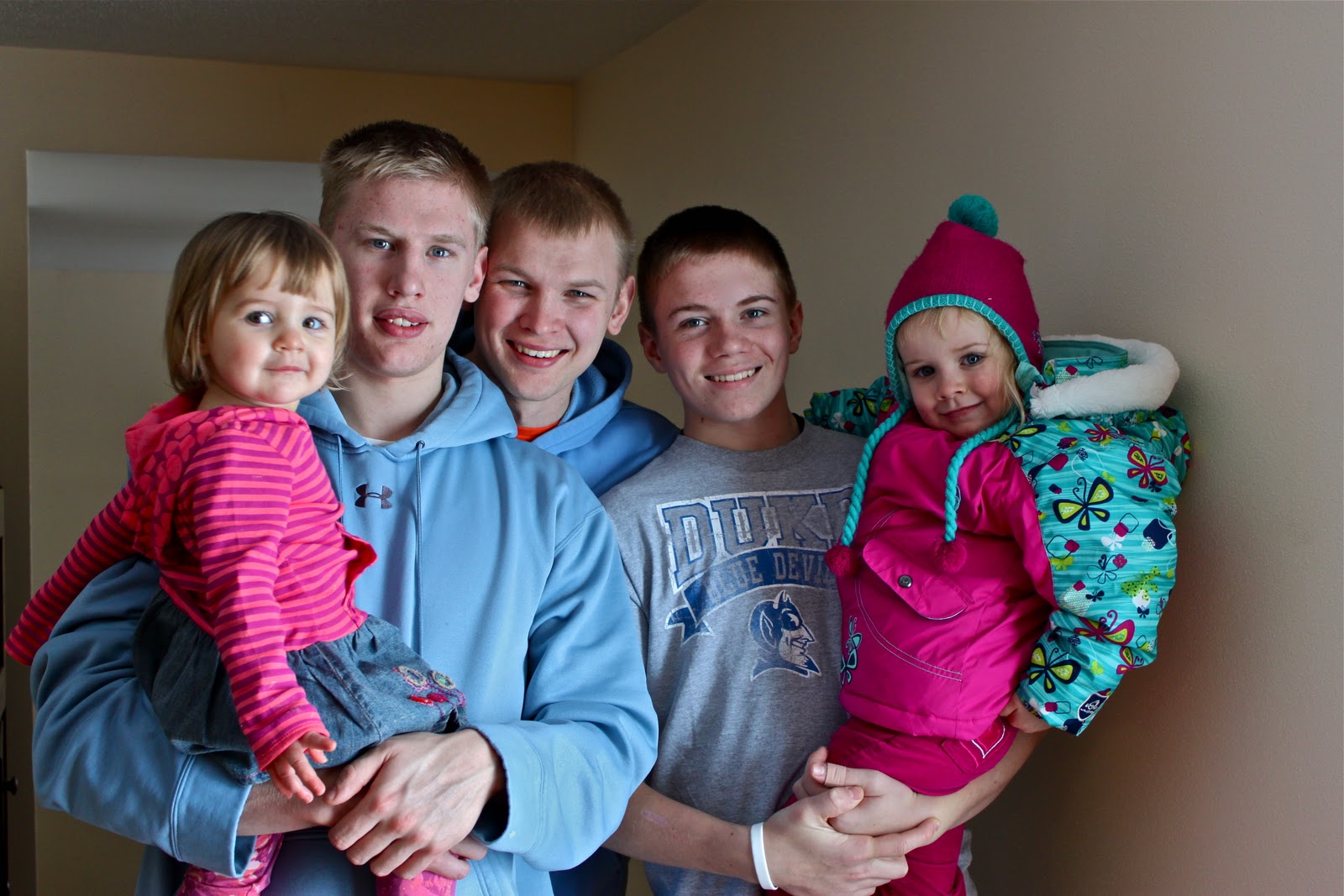 (Handsome men in the blue sweat shirts are my “little” brothers and famed uncles, adored by our children. Miss A’s favorite word is “Robbie” and she equally loves Uncle “Doe”…Joe.)