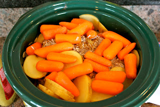 Yummy Yummy, I need to get a beef roast. We sell all of ours to our customers 🙁 We also need to get you a bigger crockpot missy 😉