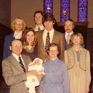 Grandpa Sonny holding me on my baptism along with my parents, grandma, aunt and uncles. |