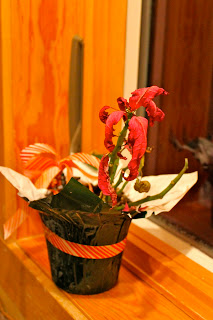 On the frozen prairie this winter, these poinsettias are the only green we have around the house because certainly there is nothing green outside. I would like to somehow save the poor plants.
