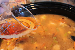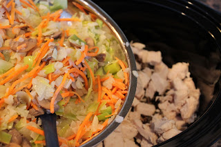 Dump in your vegetable frying pan mixture into the slow cooker.