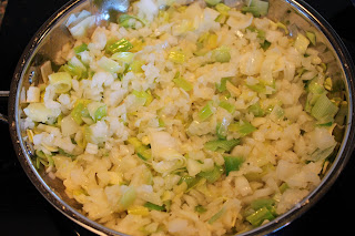 Start off with chopping up a couple of leeks.