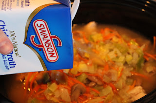 Add 8 cups of chicken broth.