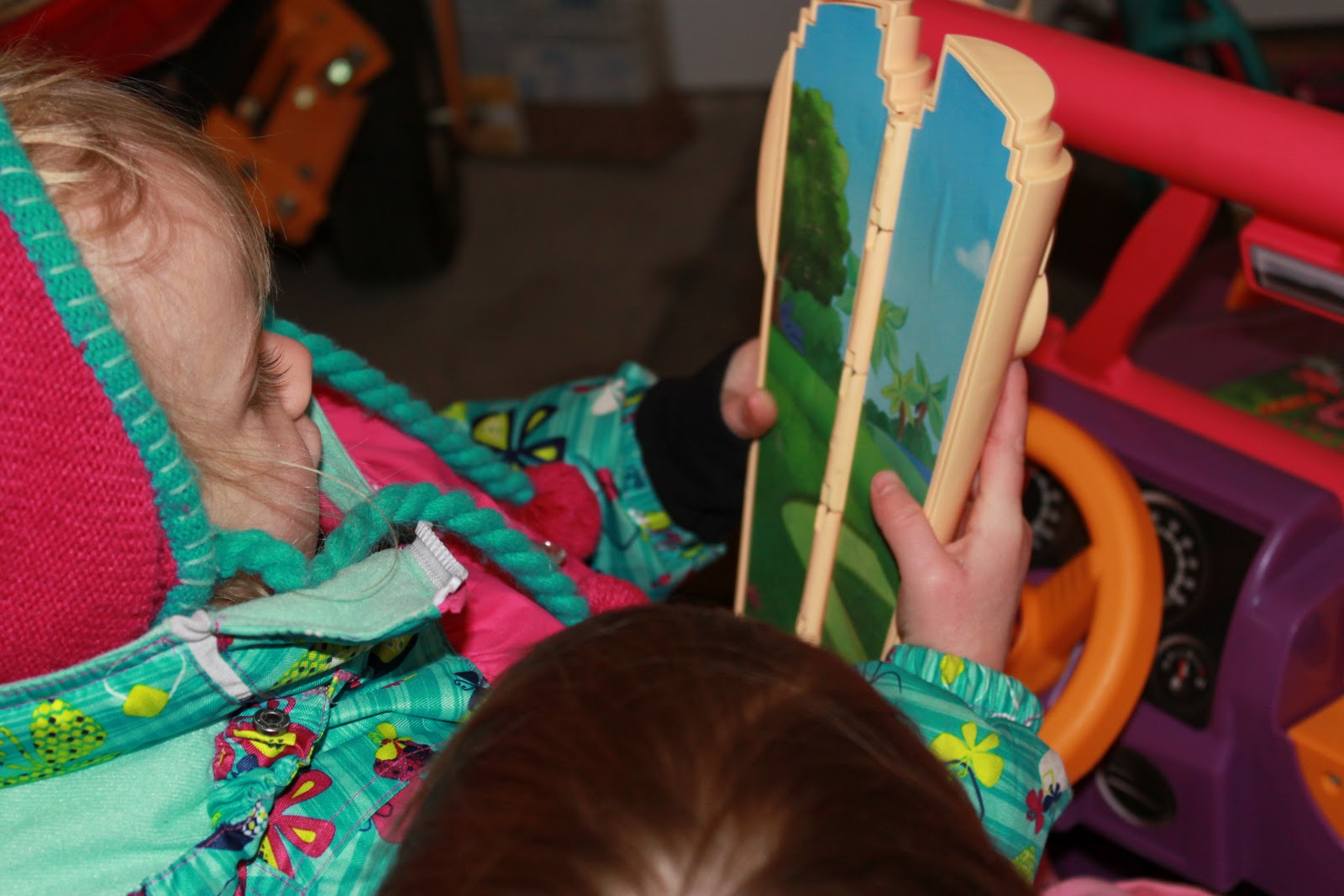 Miss E got out her map and decided to take her little sister on an adventure of her own around the garage.