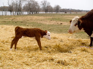 My uncle Jim cares for his cows and calves daily, around the clock. He cares for his cows just as much as he cares for his great niece, our Miss E that is he holding in the above picture.