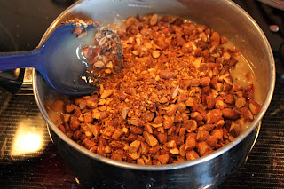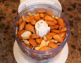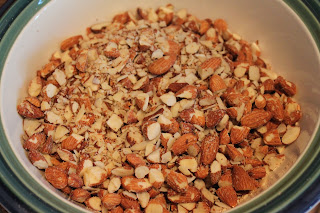 The original recipe called for dry roasted almonds. I used 2 cups of raw almonds I had and 1 cup of sliced almonds and chopped them.