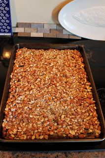 Keep the oven on and turn up to 350F to toast almonds.