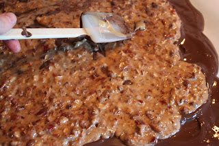 This will harden quickly and I pushed it down using a spatula over the chocolate.
