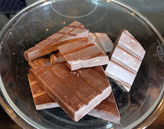 Break chocolate bar into pieces into microwavable bowl. Melt according to directions in microwave, stirring often. Add 1 tsp. of almond extract while melting.