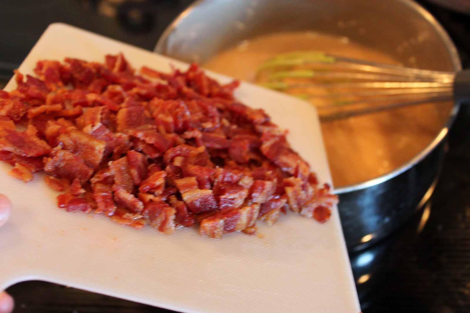 I patted down the bacon with a few paper towels to remove some extra grease.